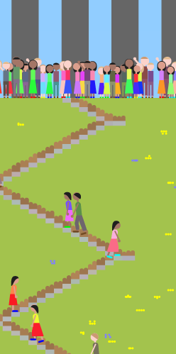Here we see pilgrims who have come in their cars (they are, after all, 21st century pilgrims). They seek Enlightenment. They start at the foot of a high mountain and ascend exactly 1000 fully-resolved stairsteps to the temple at the top. They are wearing colorful casual clothing and sneakers. At the top they mill around in a big crowd, burn incense, say prayers, chatter, read their guidebooks, flirt, and take digital photos of each other.