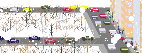 If you compare the size, position, color, etc. of the mountains from one Beigeburg image to another you see the effect of random numbers in action. Each image has a different set of mountains. Close study shows that the same conclusion holds for the buildings, cars, pedestrians. About the only thing that remains constant from one image to another is the streets.
