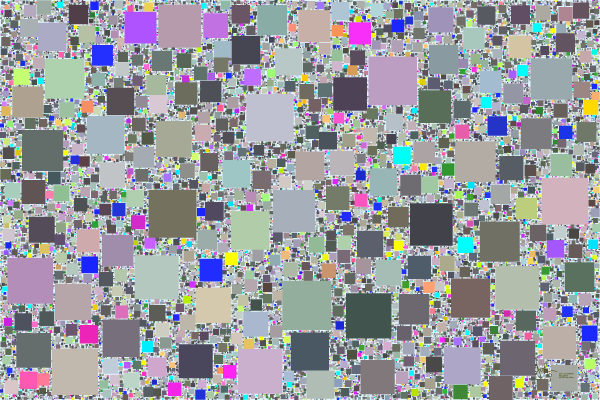 A sequence of steadily-smaller squares is placed within the drawing, such that each new square goes into one of the interstitial places between previous squares.