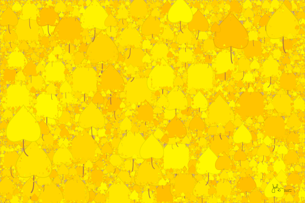 This image shows another decorative use for the basic pattern. Each square has a leaf in it, and they are written larger than the square so that they appear to overlap. No two leaves are quite the same color. An autumnal "autumn gold" feel to it.
