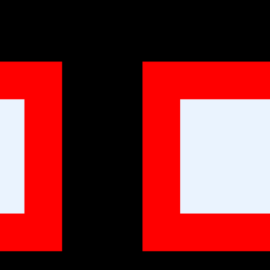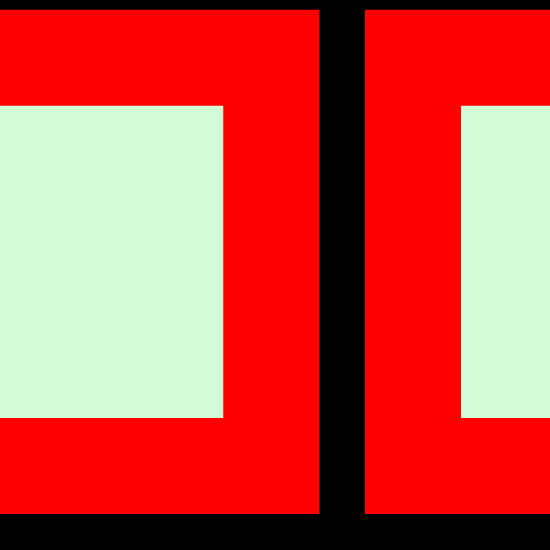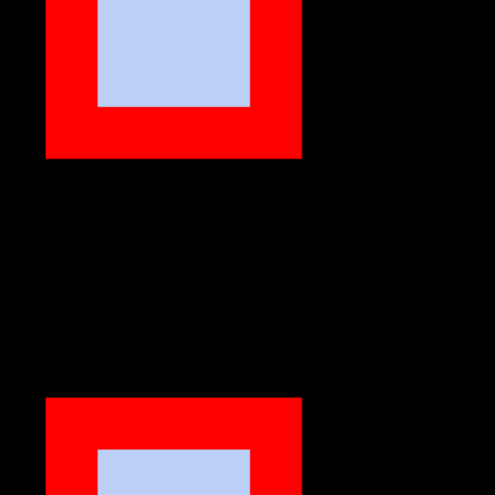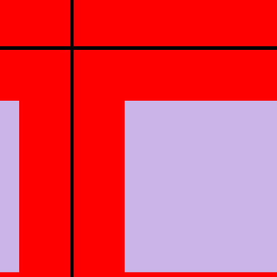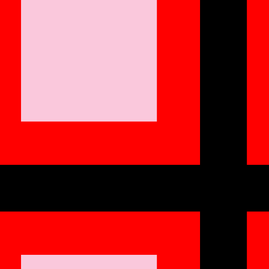 You should think of the pattern as beginning with a black square, which is the region to be filled. Each new square is a pale color, and it is surrounded by a red band whose width is the half-width of the next-to-be-placed square. Because of periodic boundaries a given placed square may have several pieces, all of the same color. Thus at each stage the remaining black region(s) is the only place where the center of the next square can go. One can use this formulation to re-state the halting problem: The algorithm never halts if it can be shown that the area of the black region(s) is always > 0.