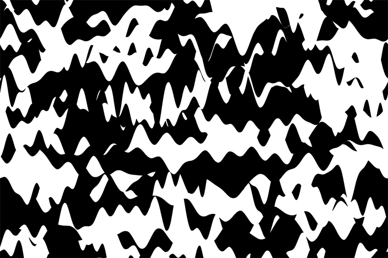 Here the properties of the incoherent waveforms have been set up in a way that the overlapping of black and white regions gives flowing "organic" forms with occasional sharp points. Without color to give a cue, the eye instead tends to find "things" by association -- snakes, animals, faces (the same kind of thing that some people see in clouds and rock formations). The "things" may appear in either black or white. This is the only type of image in which I have seen this, and shows an interesting borderline case between randomness and order.